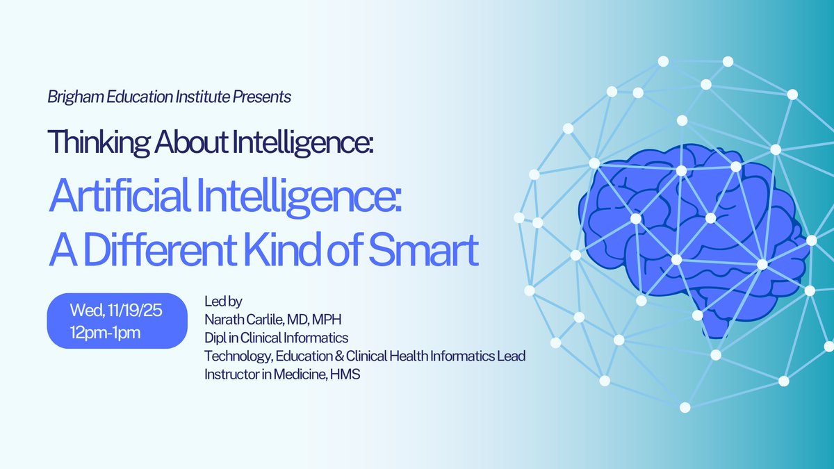 Join the #BrighamBEI for "Thinking About Intelligence: Artificial Intelligence, a Different Kind of Smart" with @narathc tomorrow from 12-1pm EDT!